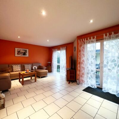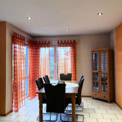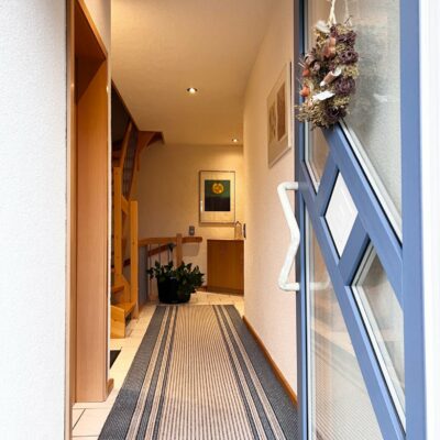Im Erdgeschoss befindet sich neben der Küche und dem Gäste-WC, der zu gemütlichen Stunden einladende Wohn-/ Essbereich, von dem der direkte Zugang auf die nach Süden ausgerichtete Terrasse und den Gartenbereich möglich ist.