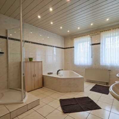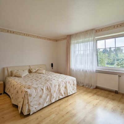 Bei dem knapp 14 m² großen Bad können wir sicherlich schon von einer Wellness-Oase sprechen. Ein helles und großzügiges Schlafzimmer und ein Gäste-WC runden diese Ebene / Wohnung ab.