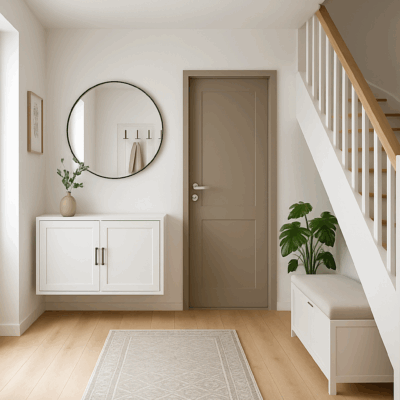 Im Erdgeschoss führt der Weg vom Windfang in die Diele. Von dort gelangen Sie in den Wohnbereich, der in den Flur übergeht. Dieser verbindet das Büro (alternativ auch Ess- oder Gästezimmer), die Küche sowie das Duschbad miteinander.