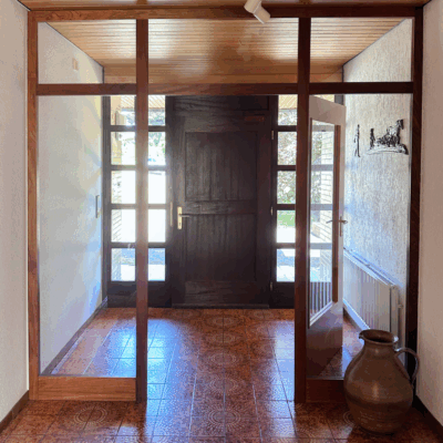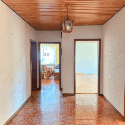 Beim Betreten des Hauses empfängt Sie der 2005 neu errichtete Windfang, der einen geschützten Übergang vom Außen- in den Wohnbereich bietet. Über den daran anschließenden Flur sind alle Räume zentral erreichbar
