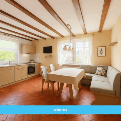 Der Anbau umfasst eine kleine Diele, ein Wohn-/Schlafzimmer, eine Küche sowie ein eigenes WC. Die Raumaufteilung ist kompakt, funktional und lässt sich bei Bedarf individuell anpassen – ideal für die erwachsenen Kinder, Gäste, Pflegekräfte oder zur Vermietung als Einliegerwohnung.