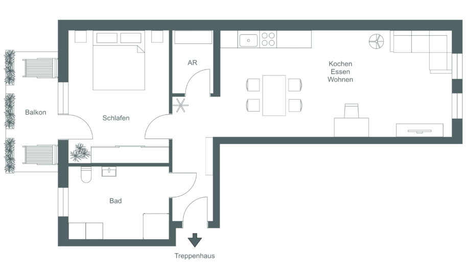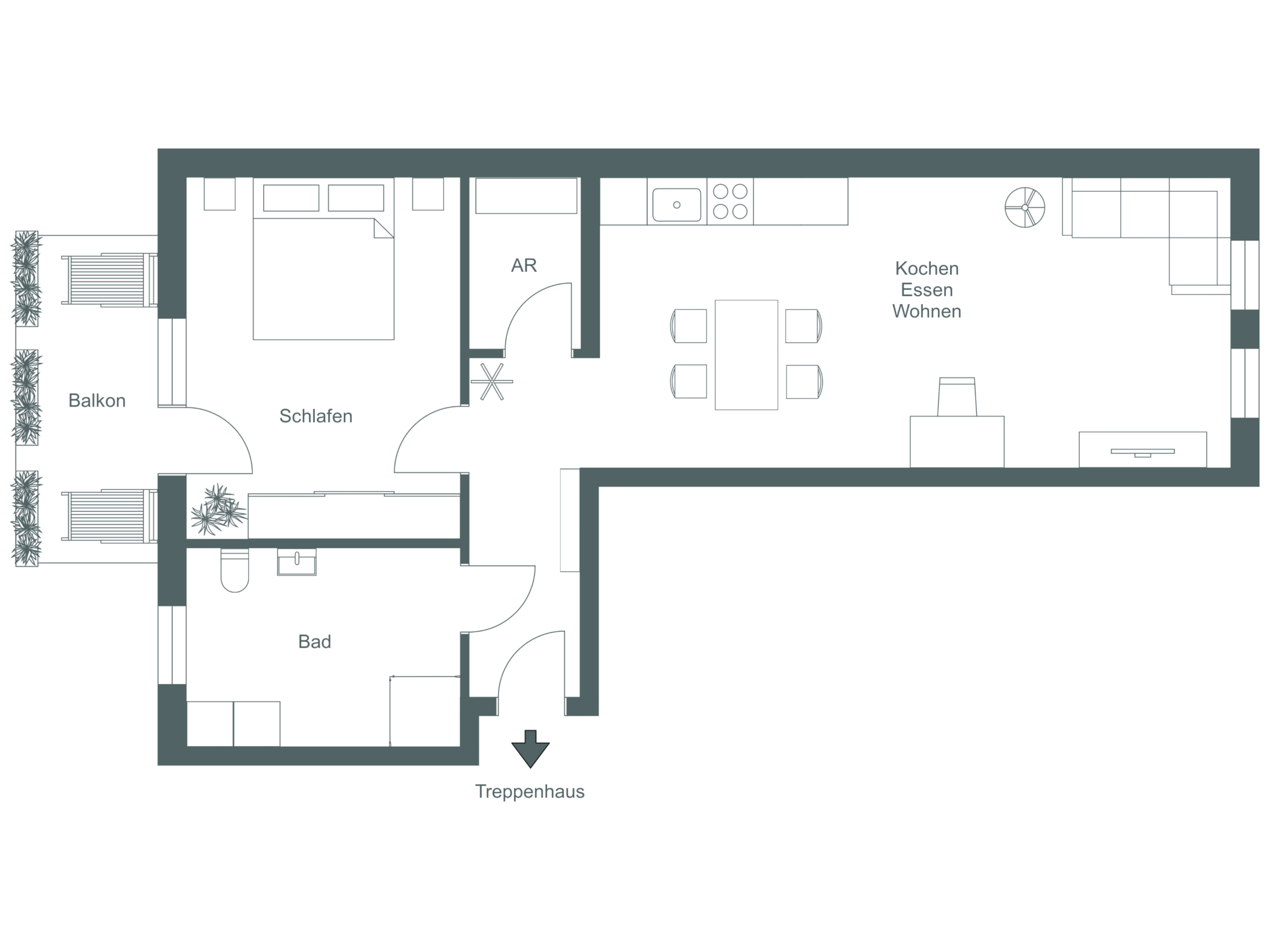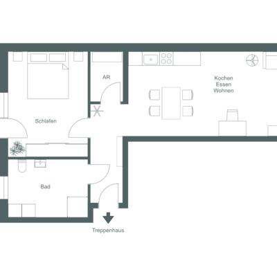 Insgesamt wird die Wohnung durch einen Abstellraum abgerundet, der für zusätzlichen Stauraum sorgt.