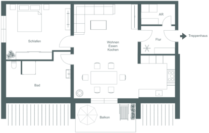 Nicht zu vergessen ist der Balkon, der an sonnigen Tagen zu Ihrem Lieblingsplatz wird. Hier lässt sich das Leben im Freien in vollen Zügen genießen.