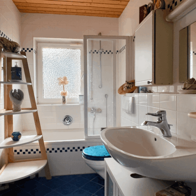 Der Wohnbereich im Untergeschoss wird durch eine abschließbare Verbindungstür vom Kellerbereich getrennt und beherbergt ein Tageslichtbad sowie drei weitere Räume, die sich, je nach Bedarf, als Wohnzimmer, Schlafzimmer, Küche oder auch als Hobbyraum nutzen lassen. Ihrer Kreativität sind hier keine Grenzen gesetzt. Aktuell werden diese Räumlichkeiten, wie aus den Grundrissen ersichtlich, als Praxisräume genutzt.