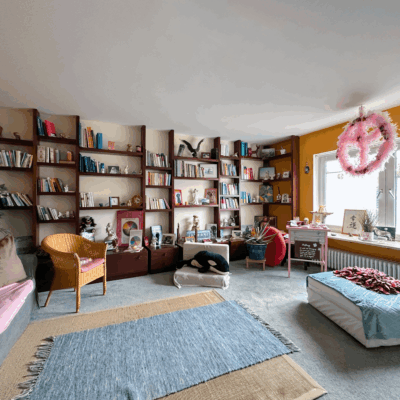 Vom zentralen Wohnbereich erschließt sich rechterhand der private Trakt mit einem Schlafzimmer, zwei weiteren Zimmern und dem Badezimmer. Linkerhand führt eine Diele zum Gäste-WC und zur Küche.