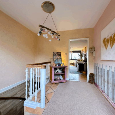 Bereits beim Betreten des Hauses empfängt Sie ein heller, freundlicher Eingangsbereich. Von hier aus führt der Weg weiter in den offen gestalteten Wohnbereich, der durch große Fensterflächen einen atemberaubenden Panoramablick direkt über das Tal eröffnet, der Licht und Weite in das Herz des Hauses bringt.