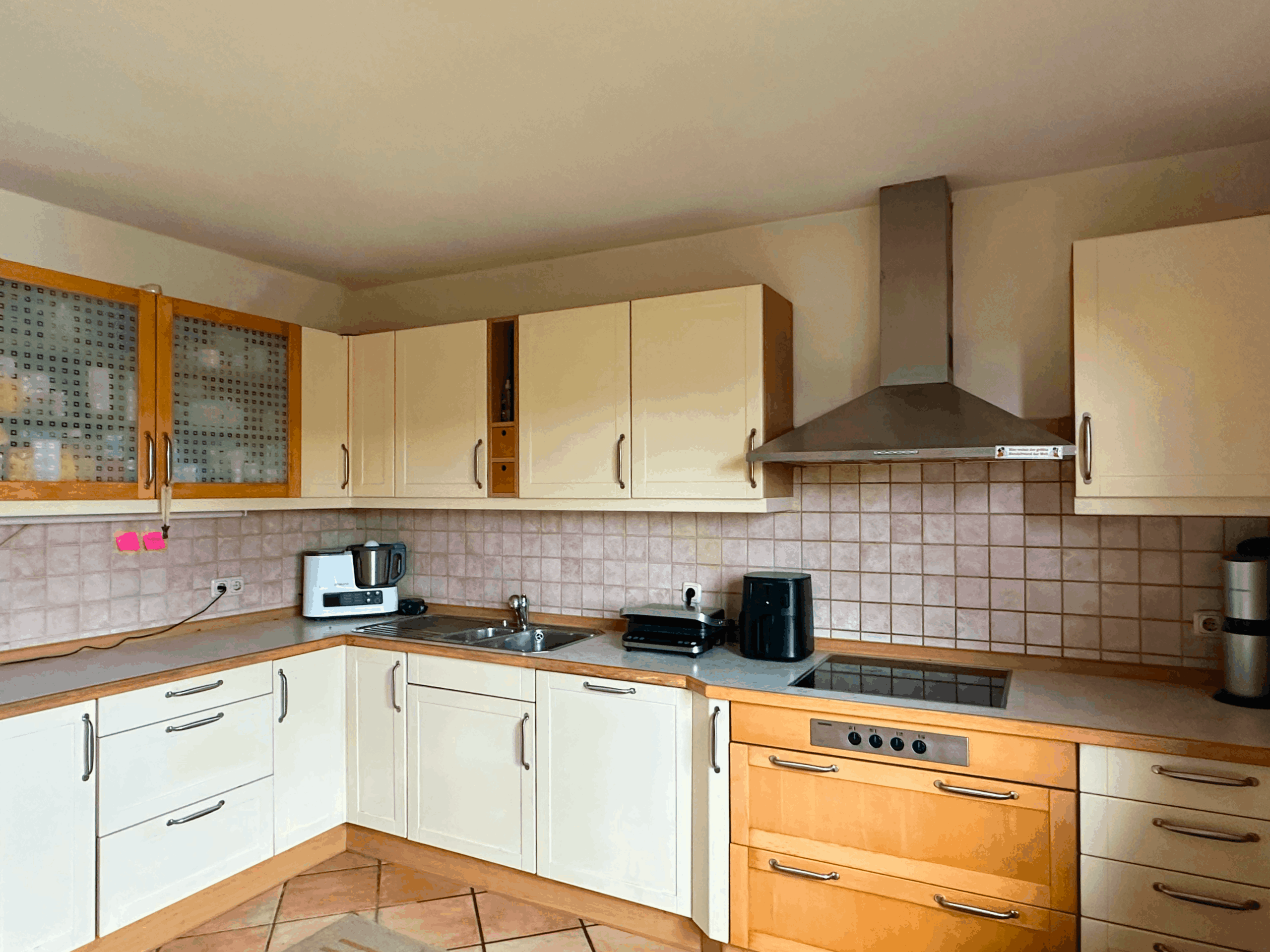 Dank der offenen und hellen Gestaltung lädt die Küche zum Kochen und Verweilen ein. Wahre kulinarische Erlebnisse finden hier ihren Ursprung. Der direkte Zugang von der Küche auf die Terasse des Erdgeschosses schafft einen fließenden Übergang zwischen Innen- und Außenbereich.