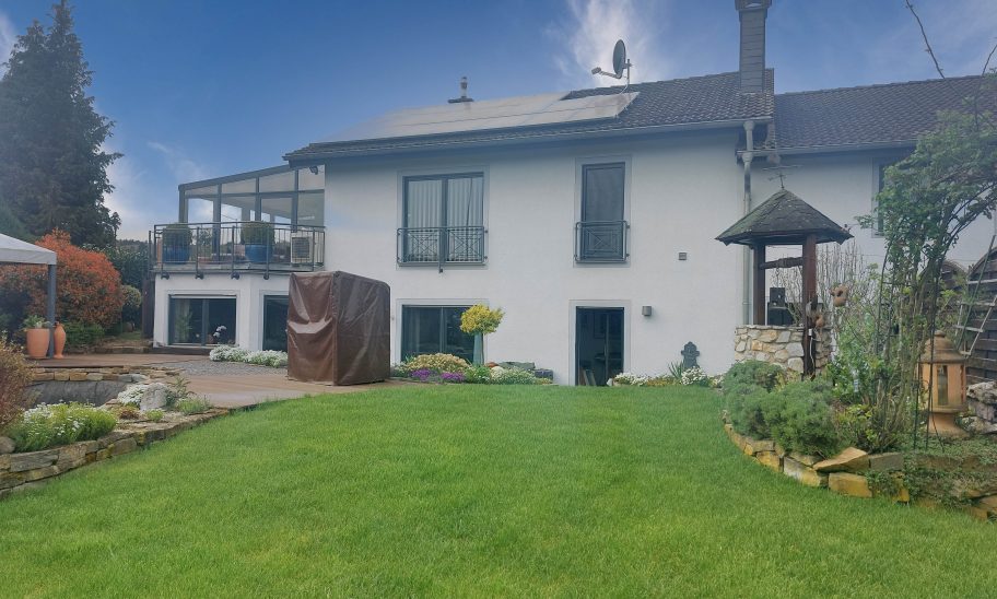 Das Highlight des Hauses, welches wir Ihnen hier vorstellen, ist … wir können uns tatsächlich nicht entscheiden. Ist es die ca. 50 m² große Wellnesslandschaft, mit Sauna und Whirlpool oder ist es der traumhaft angelegte Garten mit Außenpool, Pavillon & Gartenhaus oder vielleicht der an dem Wohnzimmer angrenzende Wintergarten oder ist es sogar der großzügige, gemütliche, helle Wohn- / Essbereich mit Specksteinofen und angrenzender Küche?