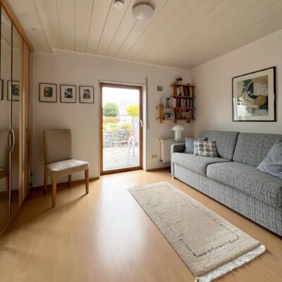 In der Raumplanung praktisch durchdacht ist, dass das Elternschlafzimmer, ebenfalls, mit Zugang in den Garten ist, und direkt an den Wellnessbereich angrenzt. Ein zusätzliches Zimmer, als Kinder- oder Gästezimmer, bietet Ihnen flexiblen Raum für individuelle Bedürfnisse, während ein Duschbad im Untergeschoss für zusätzlichen Komfort sorgt.